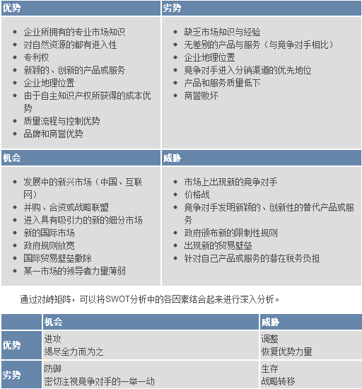 公司經(jīng)營環(huán)境的核心是由顧客、供應(yīng)商和競爭者的關(guān)系組成的,這就是公司的行業(yè)環(huán)境。通過對行業(yè)環(huán)境的分析,公司可以發(fā)現(xiàn)行業(yè)中的機(jī)會(huì)和威脅,發(fā)現(xiàn)行業(yè)中需要掌握的成功關(guān)鍵因素,為企業(yè)制定戰(zhàn)略和策略服務(wù)。
