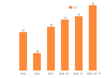 人工智能的浪潮在2014年就開始興起,2015年涌現(xiàn)出一大批人工智能創(chuàng)業(yè)公司,但是2016年人工智能進(jìn)入了短暫的低谷期后,2017年人工智能的投資金額再創(chuàng)新高,投資金額達(dá)到65億元。隨著政政府相關(guān)政策的發(fā)布與人工智能產(chǎn)業(yè)規(guī)模的增大,企業(yè)在人工智能產(chǎn)業(yè)投入的資金越來越多,預(yù)計(jì)到2020年,投入金額將高達(dá)97億元。