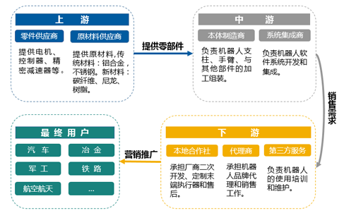 下游是本地合作社、代理商和第三方服務(wù)。汽車(chē)、冶金、化工等對(duì)工業(yè)機(jī)器人的有需求的產(chǎn)業(yè)可以通過(guò)下游的本地合作社、代理商進(jìn)行購(gòu)買(mǎi)。