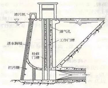 進(jìn)水口建筑一般由喇叭口、攔污柵、檢修閘門與工作閘門(也可能設(shè)在出口處)、平壓管、通氣孔及漸變段等幾部分組成。