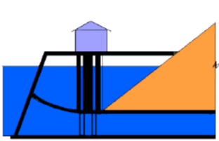 ②塔式進(jìn)水口:位于水工隧洞或土石壩壩下埋管的首部,是一個不依傍山坡,獨(dú)立于水庫之中的封閉式塔或框架式塔,又稱進(jìn)水塔。塔底裝設(shè)閘門,在塔內(nèi)或頂部布置啟閉機(jī)室。塔式進(jìn)水口受風(fēng)、浪、冰和地震的影響大,穩(wěn)定性不如豎井式,需要較長的工作橋與岸邊或壩頂連接。適用于岸坡低緩、巖石破碎或覆蓋層較厚,不宜采用靠岸進(jìn)口的情況。