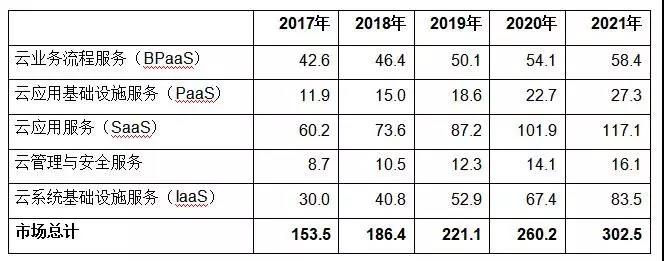 全球公有云服務(wù)市場(chǎng)預(yù)測(cè) (單位:十億美元)