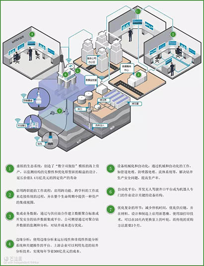 數(shù)字技術(shù)的進步,數(shù)字化成本的下降,以及設(shè)備連接范圍的拓寬,為能夠充分利用數(shù)字化變革的上游油氣企業(yè)提供了一個真正的競爭的機會。長期低迷的經(jīng)營環(huán)境和不溫不火的經(jīng)營收益使公司將這種機會變成一種需求,數(shù)字化變革能夠為油企節(jié)省數(shù)百萬美元成本,最重要的是,使企業(yè)上億美元的資產(chǎn)利用和配置更加智能和高效。