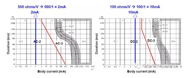 根據(jù)《IEC60147-1電流對(duì)人和家畜的效應(yīng)指南 第1部分:通用部分》說明,人體無害過流能力電流要求<10mA(DC)或<2mA(AC),對(duì)應(yīng)絕緣電阻需>100Ω/V或>500Ω/V。