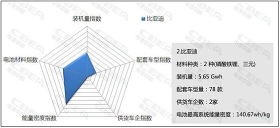 圖2:2017年裝機(jī)量排名第2的動(dòng)力電池企業(yè)比亞迪各數(shù)據(jù)情況