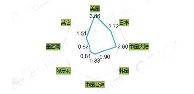 圖表2:2017年全球各區(qū)域碳纖維理論產(chǎn)能(單位:萬(wàn)噸)