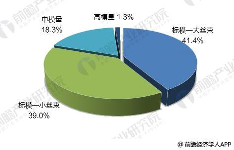 碳纖維按拉伸模量可以分為標(biāo)準(zhǔn)模量(230-265GPA)、中等模量(270-315GPA)、高等模量(超過(guò)315GPA)。從應(yīng)用上來(lái)講,高性能碳纖維總是受青睞的,然而,在一定的技術(shù)條件下,在追求性價(jià)比的商業(yè)環(huán)境中,合適的性價(jià)比會(huì)勝過(guò)高性能。因而,“大眾”的標(biāo)準(zhǔn)模量碳纖維成為需求最大的產(chǎn)品類別。2017年,標(biāo)準(zhǔn)模量的碳纖維消費(fèi)量占碳纖維總需求量的80.4%;中等模量和高等模量碳纖維產(chǎn)品的消費(fèi)量分別占碳纖維總需求量的18.3%、1.3%。