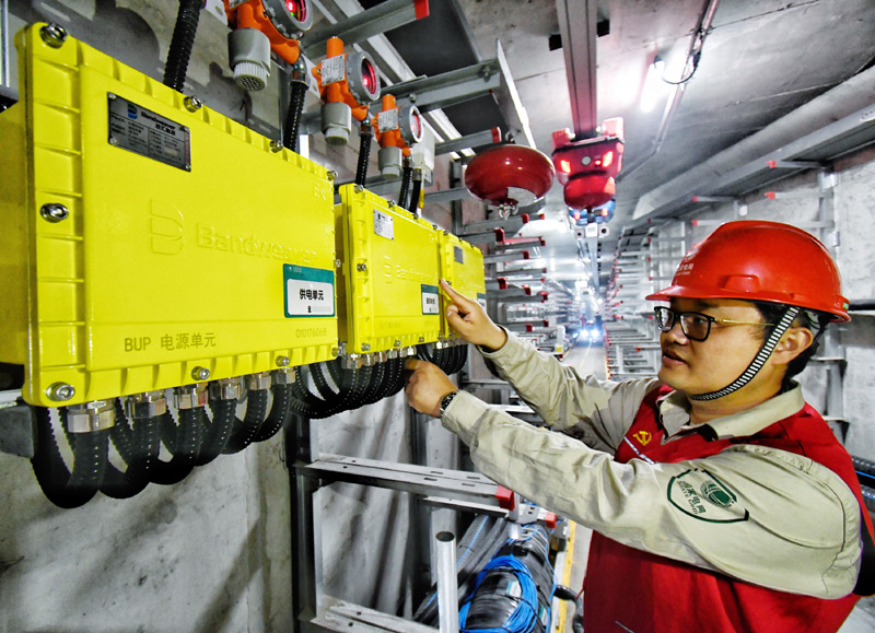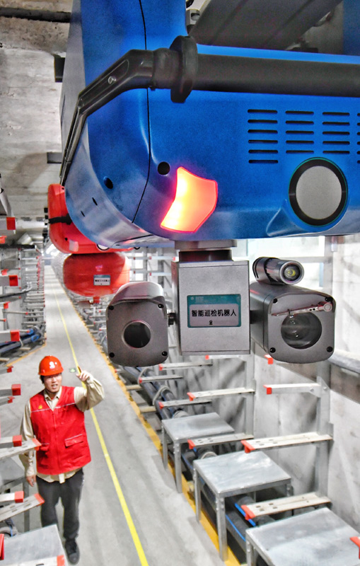 5月23日,國網(wǎng)北京電力公司的技術(shù)人員在檢測管廊供電設(shè)備。