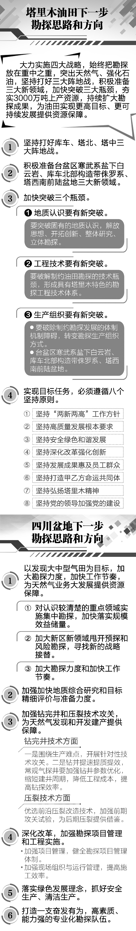 沒有勘探的大突破,就沒有油田的大發(fā)展。塔里木油田在建設(shè)3000萬噸大油氣田進(jìn)程中,要進(jìn)一步實(shí)現(xiàn)大發(fā)展,就要堅(jiān)定信心,深化精細(xì)地質(zhì)研究,讓一個(gè)個(gè)構(gòu)想指引勘探部署,使一個(gè)個(gè)部署變?yōu)橛蜌獍l(fā)現(xiàn),把一個(gè)個(gè)發(fā)現(xiàn)變成效益產(chǎn)量。