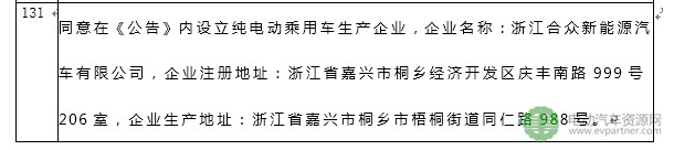 電動汽車資源網(wǎng)了解到,工信部發(fā)布道路機動車輛生產(chǎn)企業(yè)及產(chǎn)品(第308批)公告,同意在《公告》內(nèi)設立純電動乘用車生產(chǎn)企業(yè)——浙江合眾新能源汽車有限公司,這表明合眾新能源正式獲得新建純電動乘用車生產(chǎn)資質(zhì)。