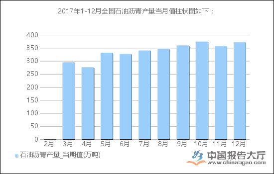 以上就是2017年1-12月全國石油瀝青產量統(tǒng)計,數(shù)據來源于國家統(tǒng)計局及中國報告大廳數(shù)據中心整理發(fā)布,僅供參考。