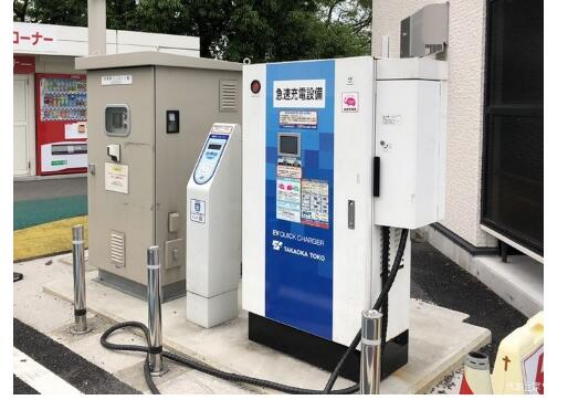 配圖為日本高速公路服務(wù)區(qū)快速充電樁