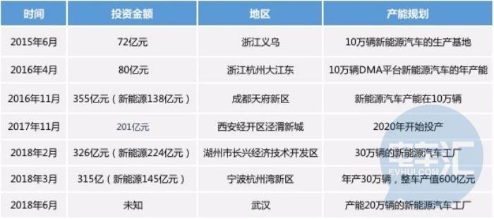 說回此次的另一位主角,吉利自2015年發(fā)布“藍色吉利行動”后,就快速推進著新能源汽車生產(chǎn)基地的建設(shè)。梳理吉利汽車近年來的項目規(guī)劃,其在新能源領(lǐng)域正在新建6座生產(chǎn)基地。
