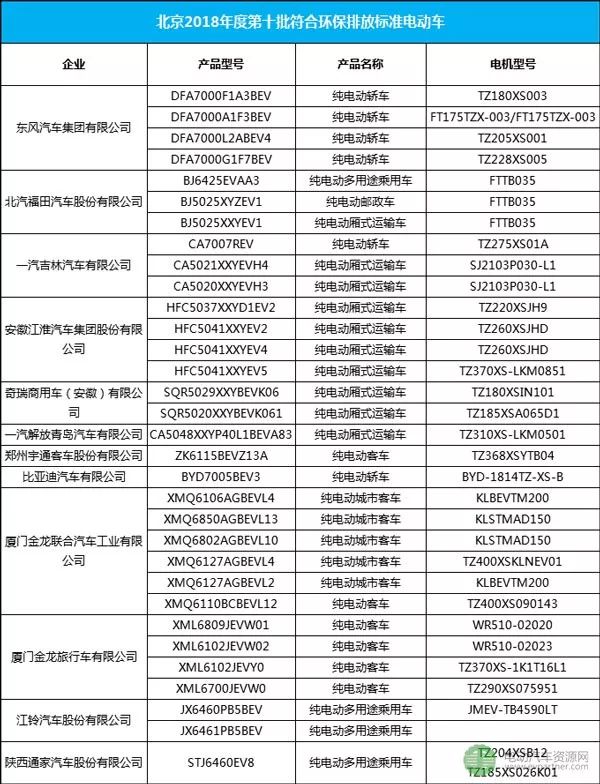 近日,北京環(huán)保局發(fā)布了《關(guān)于發(fā)布2018年度第十批符合環(huán)保排放標(biāo)準(zhǔn)車型目錄的公告》,本批車型,共涉及企業(yè)23家,車型68款電動(dòng)汽車。