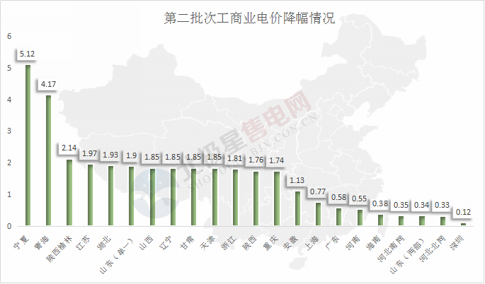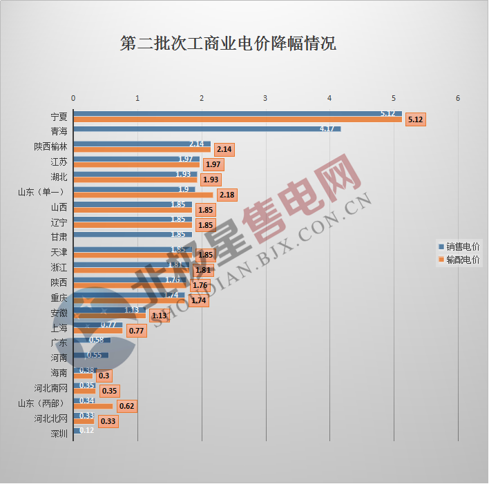 從目前已公布的第二批降電價(jià)省市來看,降價(jià)幅度最大的當(dāng)屬寧夏,銷售電價(jià)中“工商業(yè)及其它用電”價(jià)格的“單一制”電價(jià)和輸配電價(jià)同時(shí)下調(diào)5.12分。下調(diào)后,寧夏可為用戶降低年用電成本約1.23億元。在首批寧夏發(fā)布的降電價(jià)方案中,對(duì)銷售電價(jià)分類結(jié)構(gòu),實(shí)現(xiàn)工商業(yè)用電同價(jià)。據(jù)測(cè)算,這兩批降價(jià)措施實(shí)施后,可為寧夏一般工商業(yè)用戶降低年用電成本共計(jì)約3.45億元。