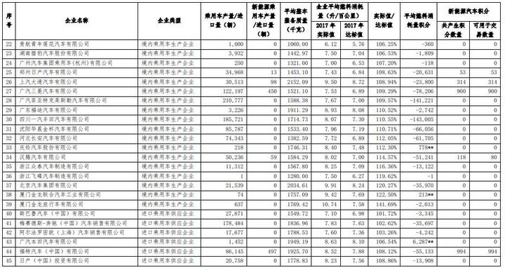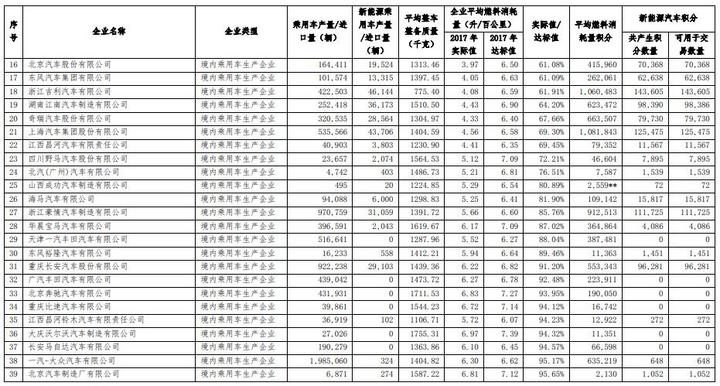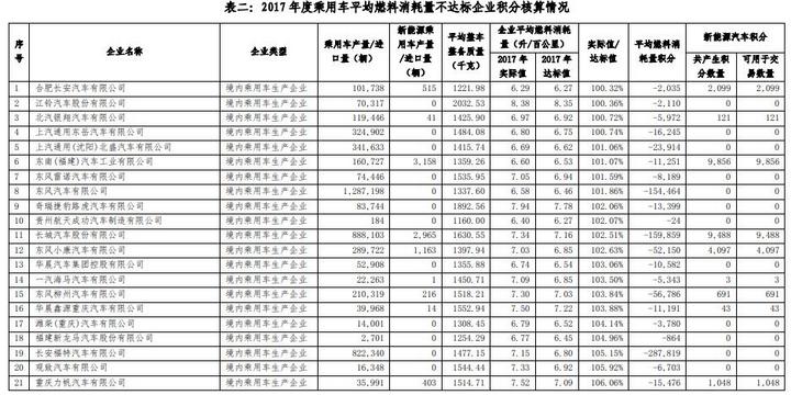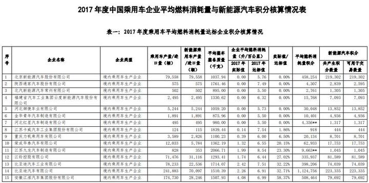 近日,工信部發(fā)布了《2017年度中國乘用車企業(yè)平均燃料消耗量與新能源汽車積分核算情況表》。