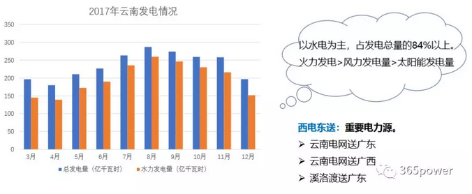 云南省2017年全網(wǎng)統(tǒng)調(diào)機(jī)組累計(jì)發(fā)電量2622.8億千瓦時(shí),其中以水力發(fā)電占總發(fā)電量的84%以上。
