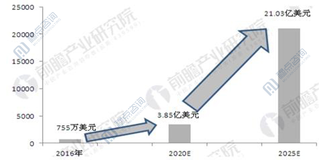 數(shù)據(jù)顯示,2016年石墨烯全球市場規(guī)模為755萬美元,隨著石墨烯制備技術(shù)進(jìn)一步推動(dòng)規(guī);瘧(yīng)用,五至十年內(nèi)市場將進(jìn)入高速發(fā)展期,到2020年市場規(guī)?蛇_(dá)到3.85億美元,2025年全球規(guī)模有望達(dá)到21.03億美元。