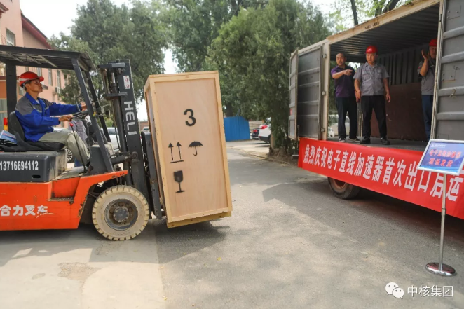 五月的北京,迎來了罕見的高溫。在中國原子能科學(xué)研究院科技綜合樓前,停著一輛廂式貨車,車頭的大紅花綢布十分醒目。原子能院無損檢測電子直線加速器出口啟運活動正在此開展,這也是中核集團首次出口加速器高端制造設(shè)備。