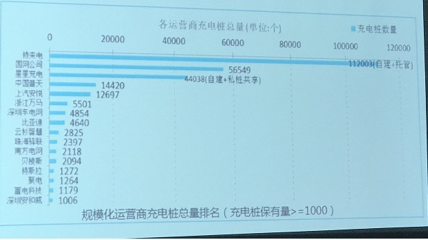 全國規(guī);\(yùn)營商企業(yè)達(dá)到16家(充電設(shè)施保有量>=1000個(gè)),特來電位居第一,共建充電樁112003個(gè),其次是國家電網(wǎng),建設(shè)充電樁56549個(gè)。