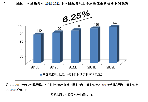 2016年,我國(guó)規(guī)模以上污水處理企業(yè)銷售利潤(rùn)達(dá)到了101.51億元,相比上年增長(zhǎng)33.66%。我們預(yù)計(jì),2018年我國(guó)規(guī)模以上污水處理企業(yè)銷售利潤(rùn)將達(dá)到112億元,未來(lái)五年(2018-2022)年均復(fù)合增長(zhǎng)率約為6.25%,2022年將達(dá)到142億元。