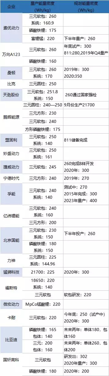 鋰電大數(shù)據(jù)整理了寧德時代、比亞迪、孚能、力神、國軒高科、北京國能、萬向A123、億緯鋰能、比克、天勁股份、遨優(yōu)動力、捷威動力、遠東福斯特、桑頓新能源、盟固利、妙盛動力、卡耐新能源、鵬輝能源、微宏動力、猛獅科技等20家動力電池企業(yè)目前量產(chǎn)的能量密度及未來規(guī)劃,以供行業(yè)參考。