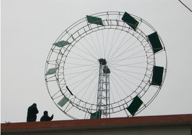 一、效率倍增的原理:如圖2所示: 全葉尖結(jié)構(gòu)的輪緣周長,是現(xiàn)有三葉片輪轂的幾十倍?稍O(shè)葉片空間大、數(shù)量多(等于增加了動(dòng)力)。同時(shí)葉片設(shè)置在輪緣上,距中心軸距離遠(yuǎn)(又等于延長了動(dòng)力臂)。物理學(xué)杠桿定理是:動(dòng)力×動(dòng)力臂=阻力×阻力臂。風(fēng)輪效率倍增,具有科學(xué)依據(jù)。這不是天方夜潭!本人的實(shí)驗(yàn)機(jī)已經(jīng)證實(shí)了這一設(shè)計(jì)可行性,風(fēng)輪扭矩可倍增。