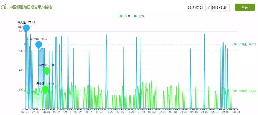 第二,單個綠證的價格偏高。我國的綠證價格以市場定價為基礎(chǔ),但對標國家補貼標準。落基山研究所的報告顯示,美國1MWh對應(yīng)的綠證價格僅為1美元,還有抵稅等經(jīng)濟優(yōu)惠政策;而中國風電綠證的平均價格為184元,光伏綠證的平均價格為667元(如下圖所示)。