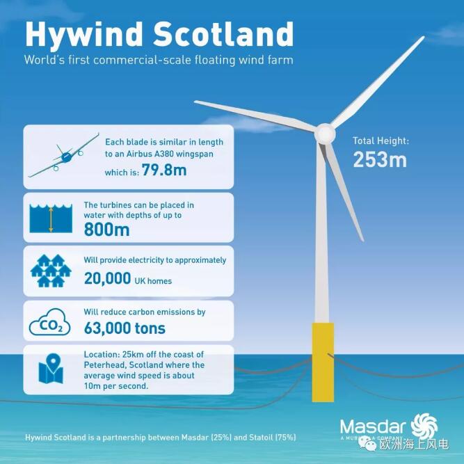 Statoil和Masdar正在努力在2030年前,將使用Hywind技術(shù)的風(fēng)場(chǎng)造價(jià)降到EUR 40-60/MWh,和其它可再生能源相比具有相當(dāng)?shù)母?jìng)爭(zhēng)力。