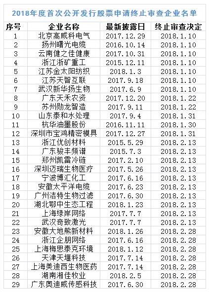 據(jù)和訊網(wǎng)統(tǒng)計,今年以來,已有29家企業(yè)終止審查。這些企業(yè)中,有近三分之一的是在預披露更新招股書后才終止審查,另外還有金太陽紡織、山東泰和水處理等公司因上會前取消審核,以及審核過程中被暫緩表決后終止審查。