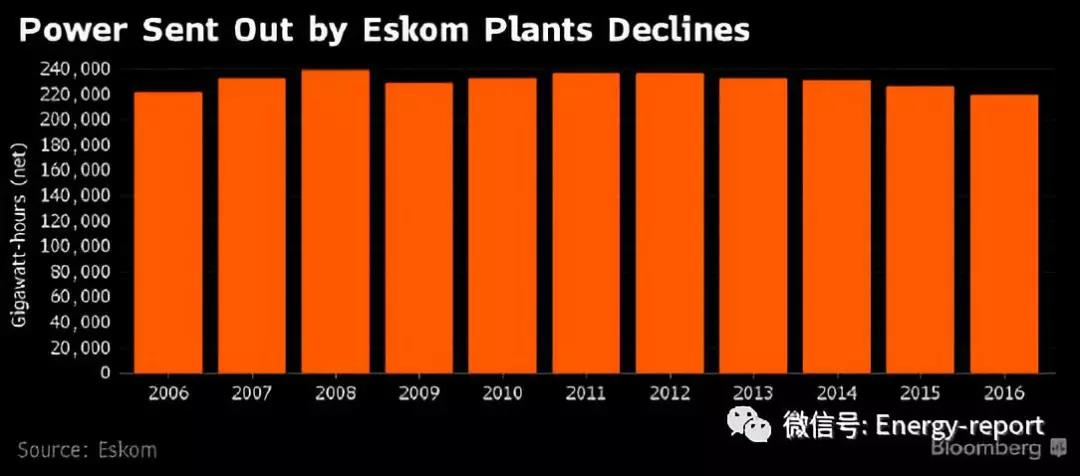 圖4 2006~2016年南非國家電力公司(ESKOM)發(fā)電聯(lián)下降(吉瓦時)