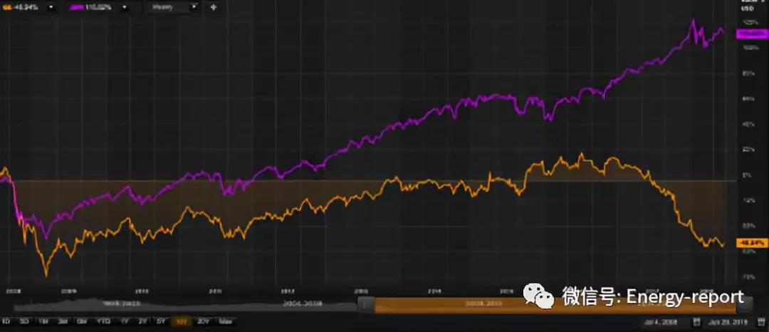 圖5 過去10年通用電氣股價表現(xiàn)(橙色) vs. 美國標準普爾500指數(shù)(紫色)