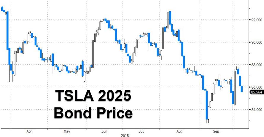 2025年到期的特斯拉債券價(jià)格同樣下挫。