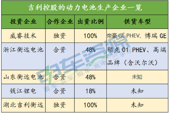 吉利通過(guò)自建電池工廠和投資其他成熟電池廠的形式,進(jìn)行動(dòng)力電池布局。
