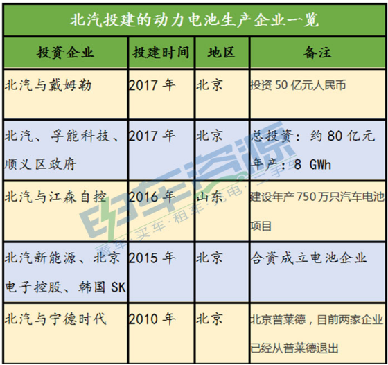 北汽不同于其他兩家企業(yè),它基本不自建動(dòng)力電池廠,為自己供貨。北汽主要的方式是與其他動(dòng)力電池企業(yè)進(jìn)行合資建廠,以及建設(shè)產(chǎn)業(yè)園,引進(jìn)動(dòng)力電池企業(yè)入駐的形式。