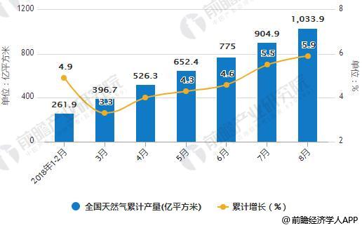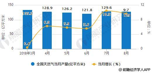 2018年1月-8月全國(guó)天然氣產(chǎn)量統(tǒng)計(jì)及增長(zhǎng)情況