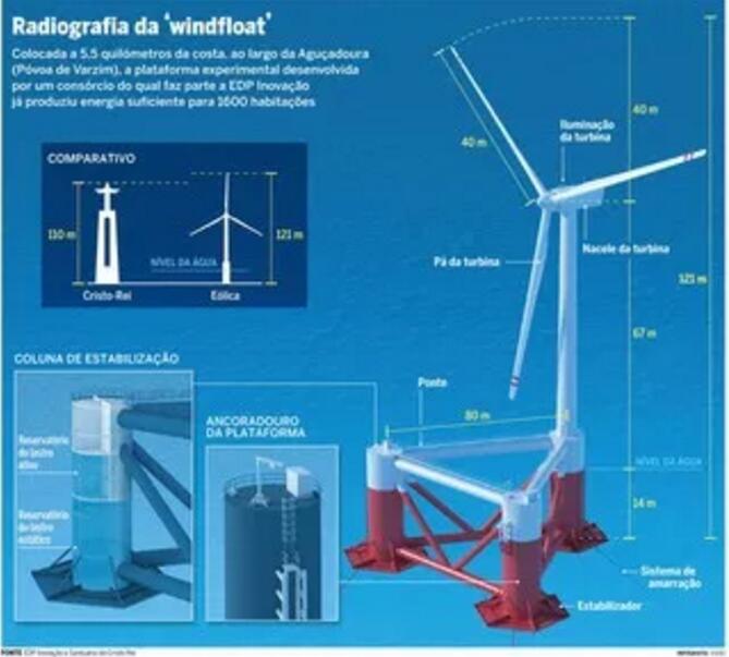 2011年10月,Principle Power公司部署了一臺(tái)全范圍的2兆瓦WindFloat原型機(jī)在葡萄牙海岸。這臺(tái)發(fā)電機(jī)可在岸基進(jìn)行組裝和調(diào)試,然后再沿著葡萄牙海岸拖曳。截止目前該系統(tǒng)已經(jīng)發(fā)電超過了16GWh,通過海底線纜傳送至當(dāng)?shù)氐碾娋W(wǎng)。