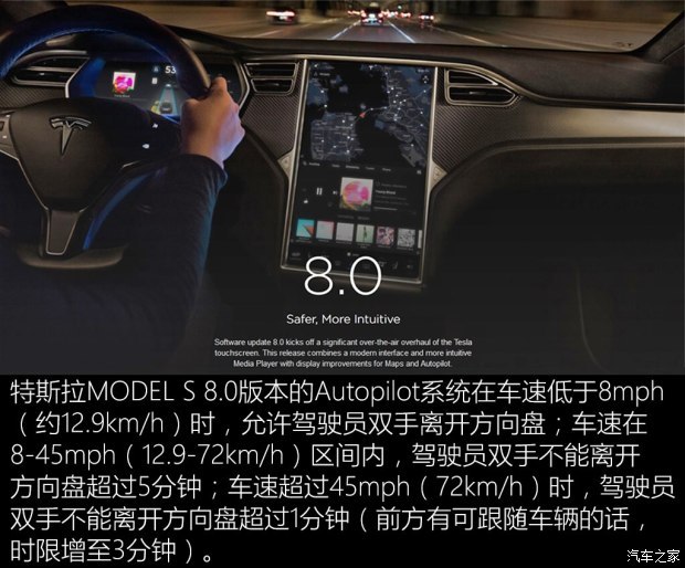 特斯拉自動駕駛系統(tǒng)允許雙手離開方向盤并不意味著駕駛員就能撒手不管,恰恰相反,駕駛員應(yīng)該時(shí)刻留意車輛行駛情況和路況。對雙手離開方向盤的時(shí)間進(jìn)行限制,目的正是提醒駕駛員,請做好隨時(shí)接管車輛的準(zhǔn)備。特斯拉的這一舉措避免了駕駛員對自動駕駛系統(tǒng)的過度依賴,提升了車輛行駛的安全性,駕駛員手握方向盤在遇上突發(fā)情況時(shí)能夠第一時(shí)間接管車輛從而避免事故的發(fā)生。特斯拉官方表示,新系統(tǒng)將降低至少50%的事故率。