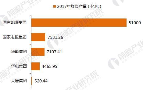 2017年,國家能源集團全年煤炭產(chǎn)量為5.1億噸,位列第一,國家電投集團次之,為7531.26萬噸,接下來分別是華能集團7107.41萬噸,華電集團4465.95萬噸,大唐集團520.44萬噸。