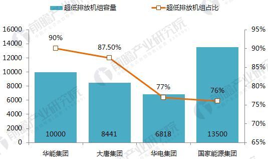 六、超低排放機組容量:國家能源集團完成最多,華能集團占比最高
