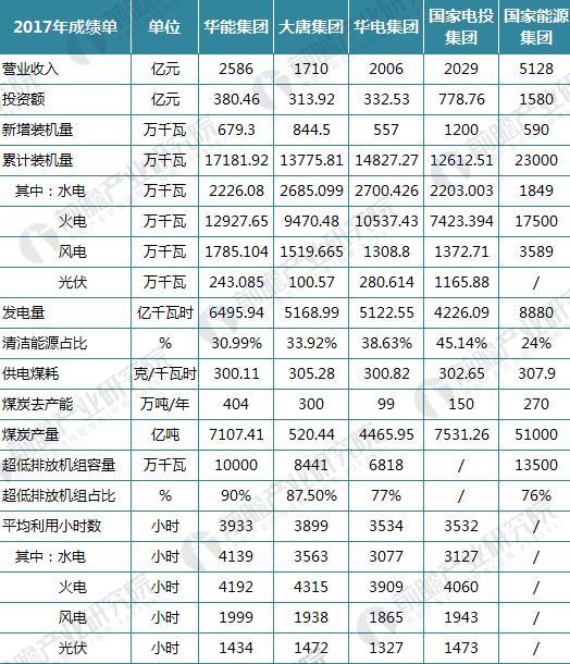 圖表11:2017年五大發(fā)電集團成績單對比明細
