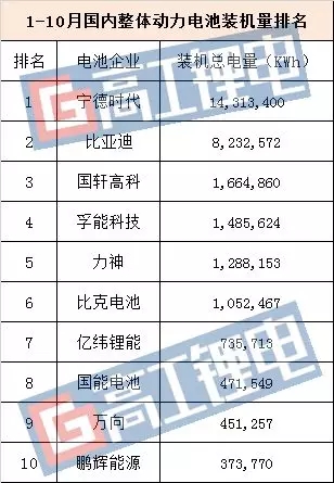 具體上榜企業(yè)有(詳見下表):寧德時代、比亞迪、國軒高科、孚能科技、力神、比克電池、億緯鋰能、國能電池、萬向 、鵬輝能源。