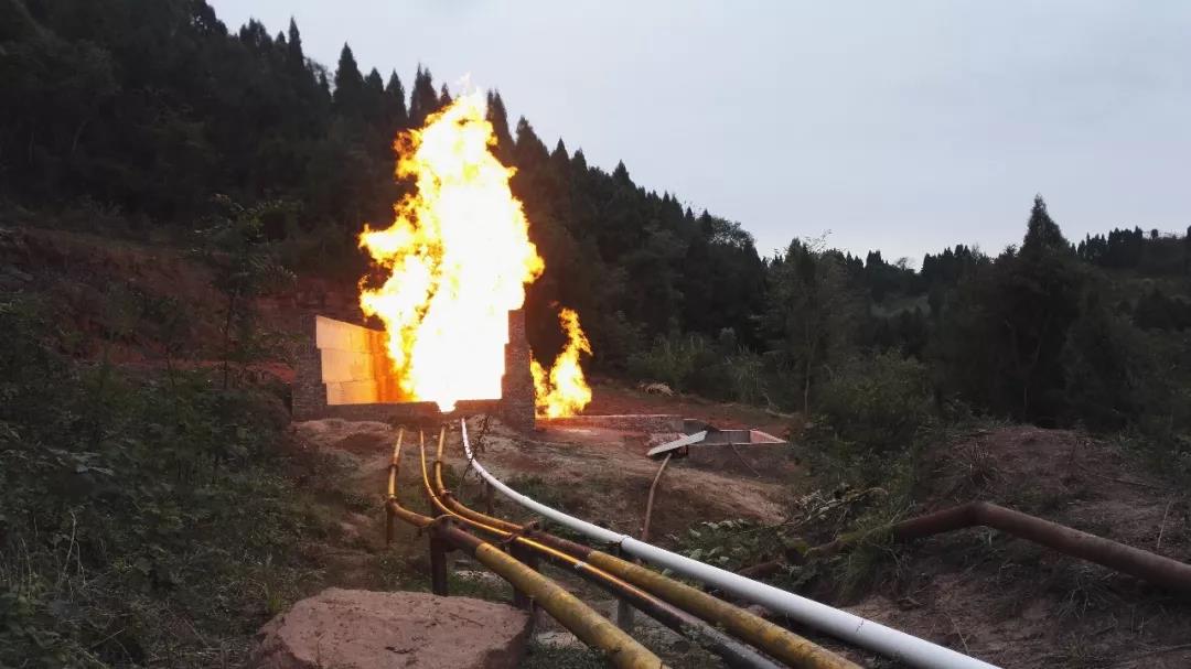 完鉆井深6300米的高石001-X10井正在進行產(chǎn)量測試,熊熊火焰顯示了地下豐富的天然儲量