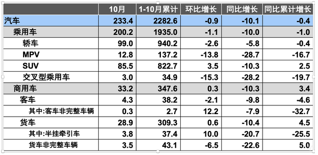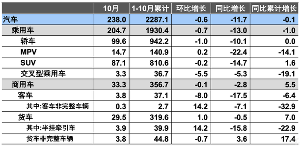 2018年10月汽車(chē)銷(xiāo)售情況:(單位 :萬(wàn)輛、%)