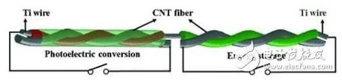 (太陽能電池和超級電容器一體集成纖維狀器件示意圖)