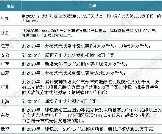 2020年主要省市分布式能源發(fā)展目標(biāo)匯總