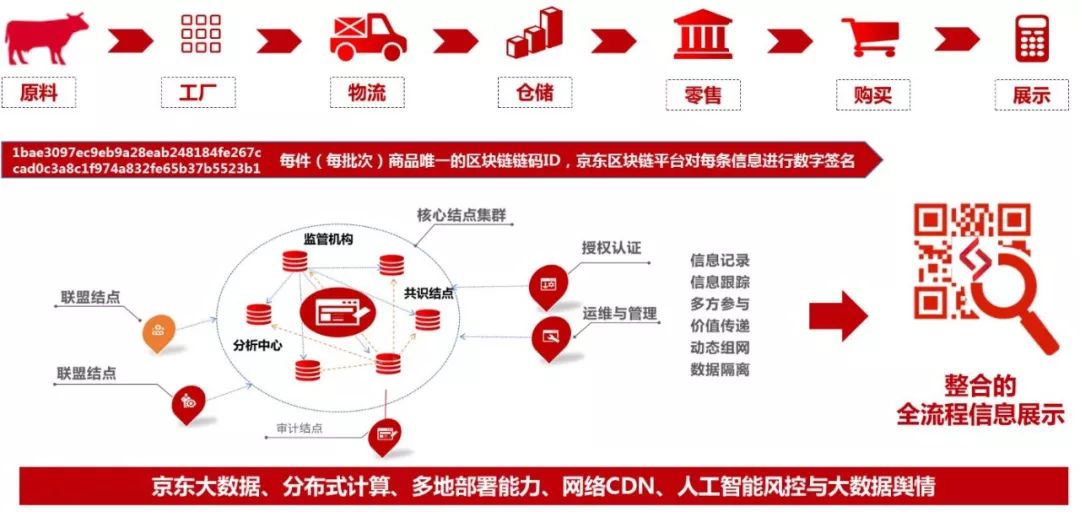 除此之外,京東集團宣布成立“京東品質溯源防偽聯(lián)盟”,與農業(yè)部、國家質檢總局、工信部等部門,運用區(qū)塊鏈技術搭建“京東區(qū)塊鏈防偽追溯平臺”。平臺將逐步通過聯(lián)盟鏈的方式,實現(xiàn)線上線下零售的商品追溯與防偽,保護品牌和消費者的權益。