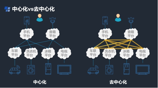 如果用去中心化思維把平臺之間打通,形成一個去中心的網(wǎng)絡(luò)結(jié)構(gòu),實現(xiàn)智能設(shè)備之間相互聯(lián)動,就可以形成一個靈活的分布式系統(tǒng)。