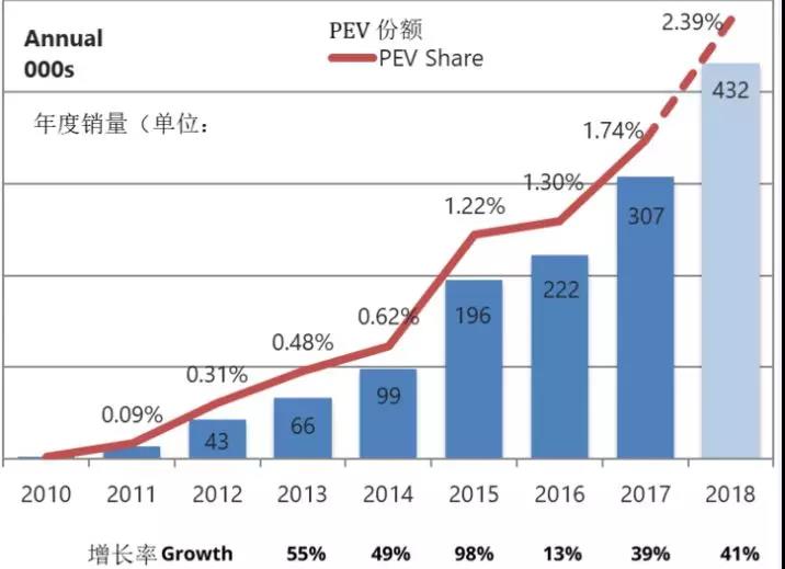有歐洲相關(guān)機(jī)構(gòu)發(fā)布數(shù)據(jù)稱,歐洲將是繼中國之后,全球第二大電動汽車市場。2018年歐洲電動汽車銷量約為43萬輛,同比增長41%;2017年的銷量為30.7萬輛,比2016年相比增長39%。