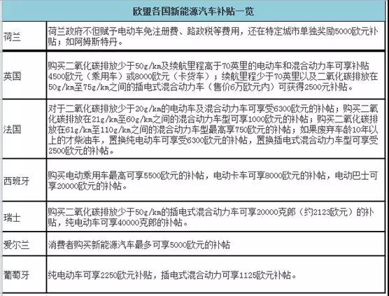 為了方便了解歐洲部分國家的新能源汽車補(bǔ)貼政策,整理了一個表格。